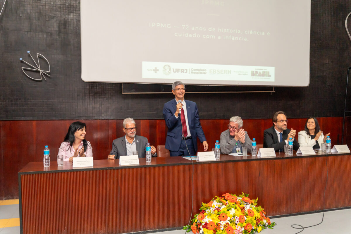 Para comemorar essa trajetória, além do reitor da UFRJ, Roberto Medronho, integraram a mesa de honra: o decano do Centro de Ciências da Saúde (CCS), Luiz Eurico Nasciutti; o superintendente-geral do Complexo Hospitalar da UFRJ/Ebserh, Amâncio Paulino Carvalho; o superintendente executivo, Giuseppe Mario Carmine Pastura, e a gerente de atenção à saúde, Márcia Cristina Pereira de Oliveira Bomfim, ambos do IPPMG; e a chefe do Departamento de Pediatria da Faculdade de Medicina, Flavia Nardes.